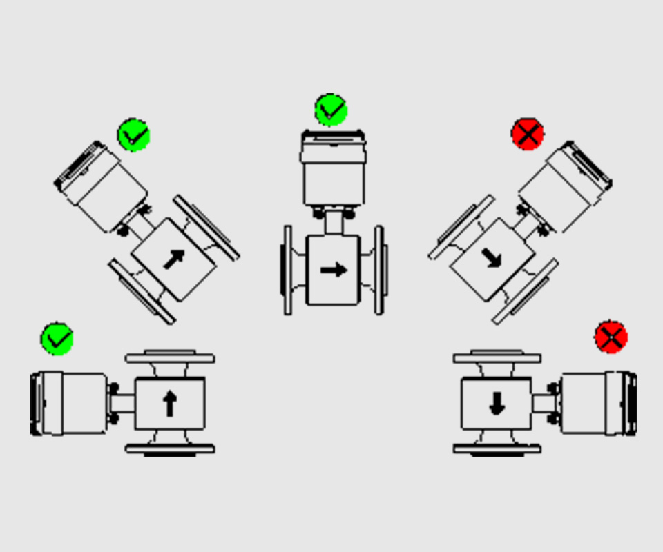 傳感器上的流量標(biāo)記必須與管道中測(cè)量介質(zhì)的流量方向一致。